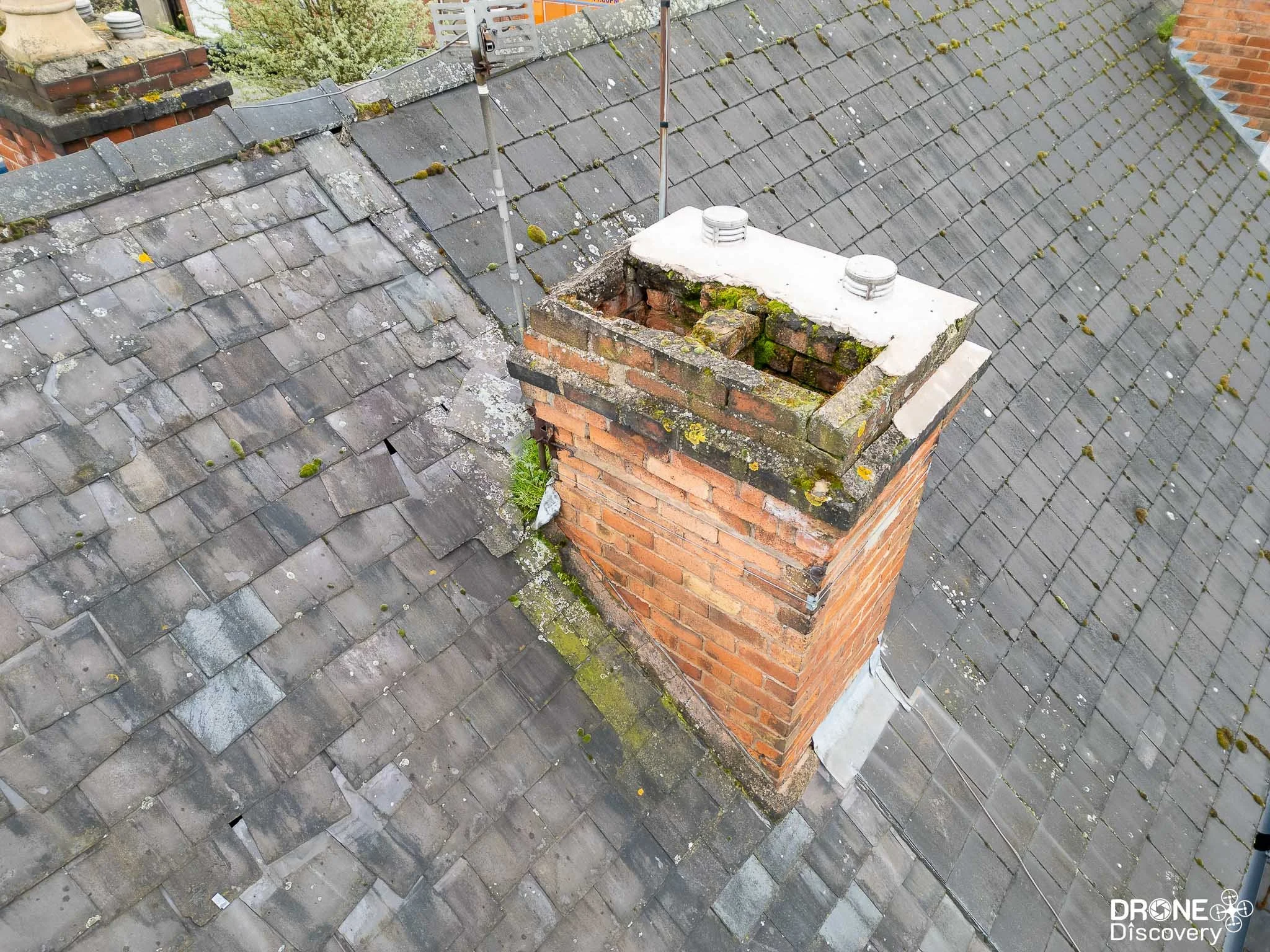Welcome to our portfolio featuring expert photography of roof, chimney, and guttering inspections. Drone photography is a low cost, safe and quick way to inspect your property. We’ll photograph the roof and focus on any areas where you suspect there might be a problem, whilst getting the photos to you within 24 hours of the shoot. Call us on 01332 890 592 for a no obligation quote. Find out more about our drone inspection services.